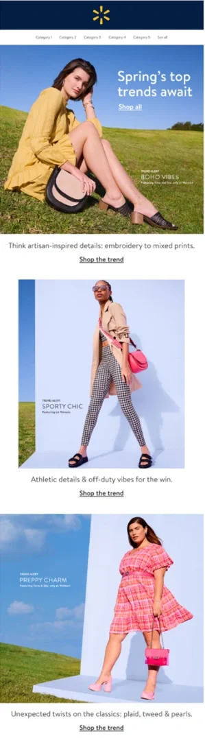 For Walmart’s spring fashion campaign we created a dreamy outdoor set juxtaposed against a blue sky. Art direction was influenced by brand colors & seasonal color palette provided by the internal brand design team.